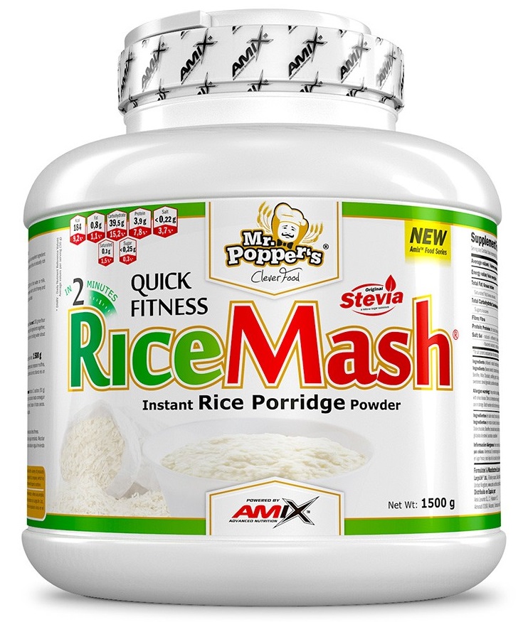 Mr. Popper’s® RiceMash® je extrudovaná instantní rýžová mouka pro rychlou přípravu báječné kaše. Jedná se zároveň o výjimečnou surovinu pro přípravu muffinů, chlebíčků, pečiva a dortů. Také výborně poslouží jako rychlé zahušťovadlo do polévek a omáček. Bílá rýžová mouka je přirozeně bohatá na sacharidy a obsahuje jen minimální množství tuků.